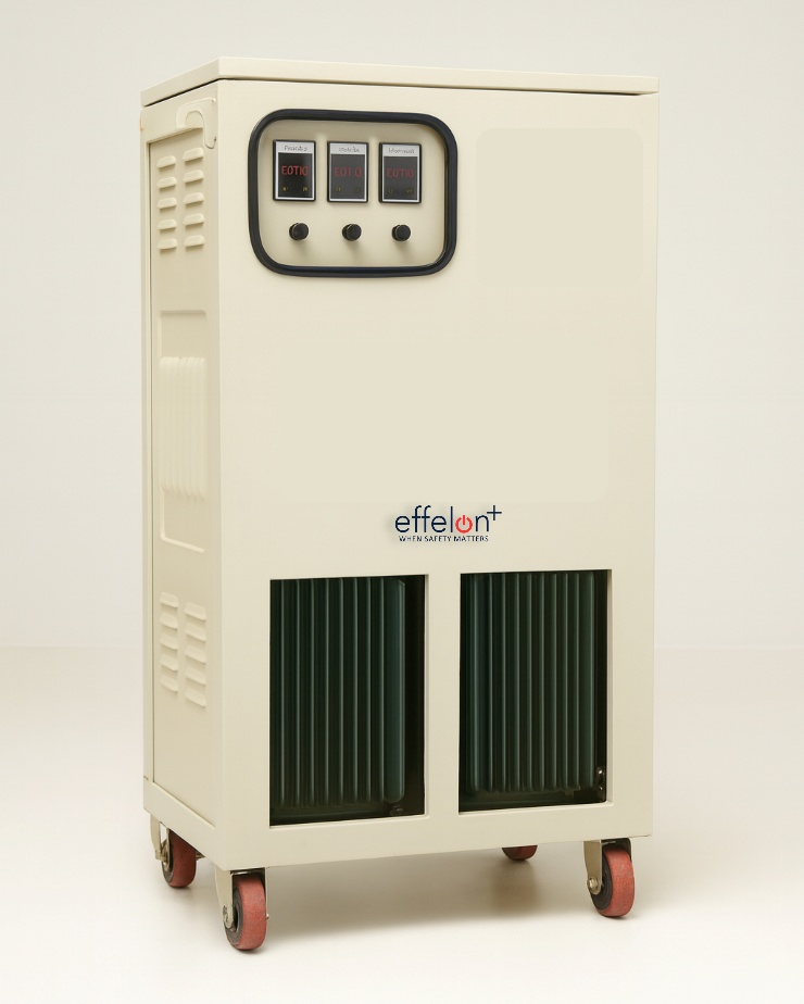 Effelon+ IGBT Static stabilizers deliver ultra-fast, maintenance-free voltage correction using PWM IGBT electronics. No moving parts, silent operation, and tight regulation for critical loads like data centers, hospitals, and automation lines.